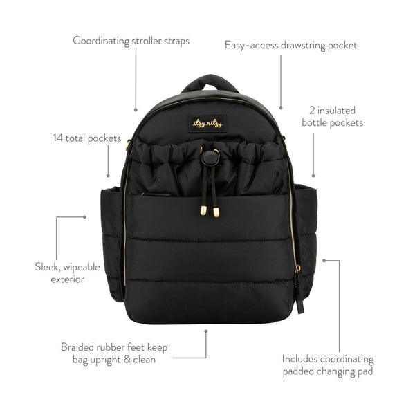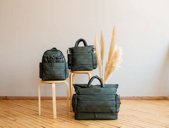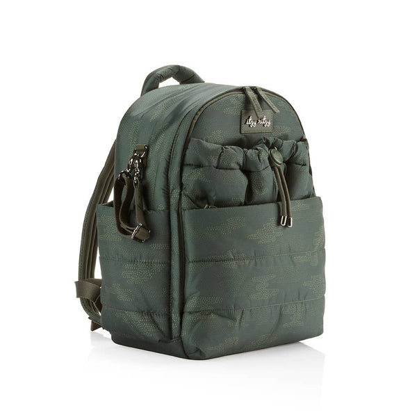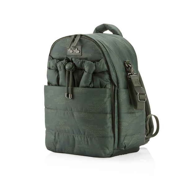 Built for those with their head in the clouds and their feet (usually running around) on the ground, our Camo puffer style diaper backpack makes a total statement while balancing form and function. The lightweight and airy construction is made for those looking to grab and go, while the laidback and luxe design effortlessly creates a major style moment Take this baby anywhere, with 14 roomy pockets, comfy padded shoulder straps, and endless eye-catching touches—including sleek brushed metal accents, a sporty corded drawstring, and delicate little details that make all the difference. Pack it up and make it a dream come true.